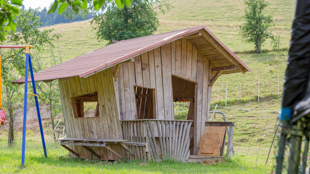 Ein großer Spielplatz mit Riesentrampolin, Ritterburg, Fußballtoren, überdachter Tischtennisplatte und Kinderspielhaus erwartet die Kleinen.