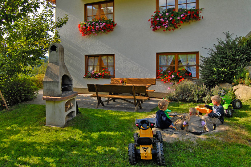 Das Gästehaus Lauby ist herrlich ruhig gelegen mit weitem Blick auf das hügelige Seitental Weilersbach. Von Natur umgeben kann man sich auf der großen Liegewiese mit Grillstelle, beim Plätschern des kleinen Bächleins, wunderbar erholen und mal alle Viere von sich strecken. Auch die kleinen Gäste kommen auf dem Bauernhof voll auf ihre Kosten: Beim Toben auf dem Gartenspielplatz, im Spielzimmer, beim Tischtennis, oder beim Streicheln unserer zahmen Tiere schlagen Kinderherzen höher.