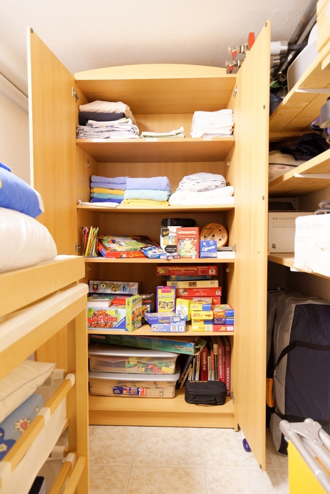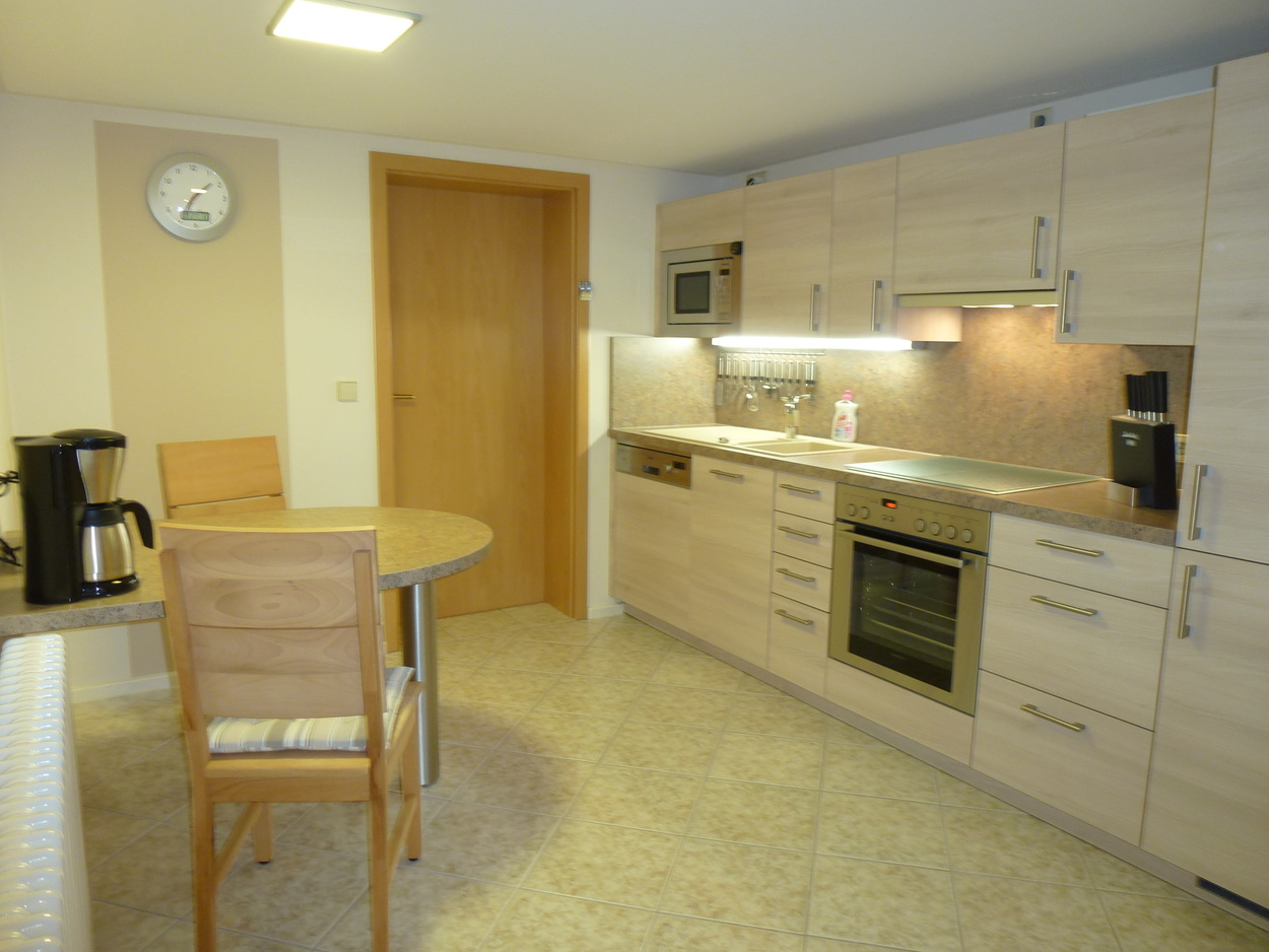 Der Wohn-/ Essbereich ist mit Massivholzmöbel eingerichtet. Für die Freizeit und gesellige Abende zuhause, stehen ihnen Gesellschaftsspiele, ein Tischkicker, Tisch-Tennis und eine Dartscheibe zur Verfügung. Die Ferienwohnung verfügt über 2 Schlafzimmer mit Boxspringbetten. Für Familien mit kleinen Kindern stehen Babybetten, Kinderbetten, ein Wickeltisch, Baby-Badewanne, Babyphone und 2 Hochstühle auf Anfrage zur Verfügung.